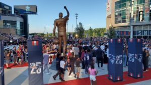 Last night we were pleased to provide executive prompter services for the New England Patriots’ Tom Brady Induction Ceremony into their Hall of Fame. It was a beautiful and fun spring evening for nearly 60,000 fans to witness in person this historic event. We utilized our Telescript MPS remote height adjustable presidential prompter system for this event. It came in very handy because the two presenters, Robert Kraft and Tom Brady, are of dramatically different heights. This system was also useful because there were times during the evening when the director wanted the prompter out of sight. These motorized remote control prompters are a game changer in this kind of situation. You can learn more about this item here: Telescript MPS Teleprompter Rentals in Boston & New England (ecsvideosystems.com)